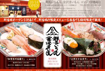 お知らせ 最新情報はこちら FacebookFacebook TwitterTwitter InstagramInstagram すべてお知らせ未分類群馬いちもん金沢まいもん群馬を握る、まぐろ問屋いちもん重要なお知らせ 2021.10.14 新店舗オープン記念!限定メニューを限定販売! お知らせ 2021.10.07 おかげさまで完売いたしました! お知らせ 2021.10.01 群馬を握る「高崎クエイル」とうずらの卵がコラボ!10/1(金)~11/30(火) お知らせ 2021.09.29 期間限定!北海フェア 10/4~11/7 お知らせ 2021.09.13 第8回まぐろ工場直売会開催のお知らせ お知らせ 2021.09.06 期間限定!初秋の秋 9/6~10/3 お知らせ < 1 … 13 14 15 16 17 18 19 20 21 22 > TOPお知らせお知らせ