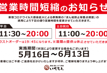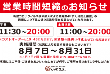 お知らせ 最新情報はこちら FacebookFacebook TwitterTwitter InstagramInstagram すべてお知らせ未分類群馬いちもん金沢まいもん群馬を握る、まぐろ問屋いちもん重要なお知らせ 2021.08.07 営業時間短縮のお知らせ 重要なお知らせ 2021.06.21 営業時間変更のお知らせ 重要なお知らせ 2021.06.14 営業時間短縮のお知らせ 重要なお知らせ 2021.05.15 時短営業および酒類提供休止のお知らせ 重要なお知らせ 2021.05.08 営業時間変更のお知らせ 重要なお知らせ 2021.02.23 営業時間短縮のお知らせ 重要なお知らせ < 1 2 3 4 > TOPお知らせ重要なお知らせ