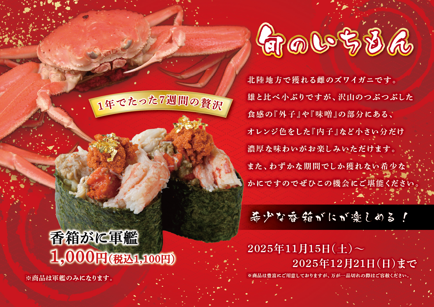 北陸の海が育んだ、“赤い宝石箱”とも言われる「香箱がに」。