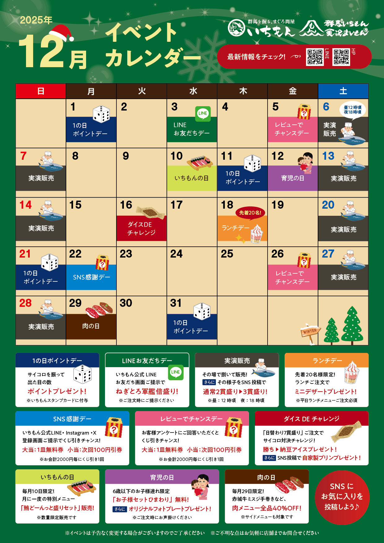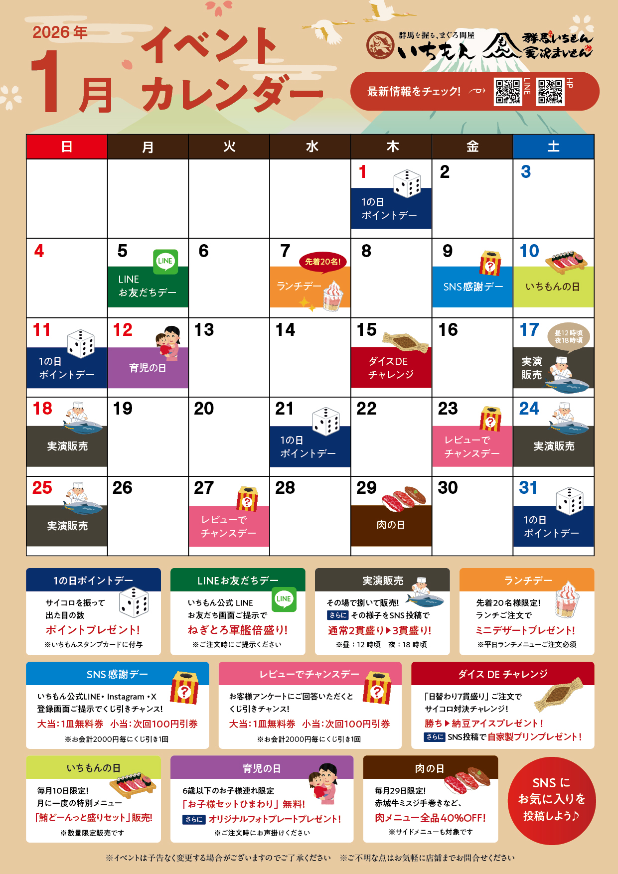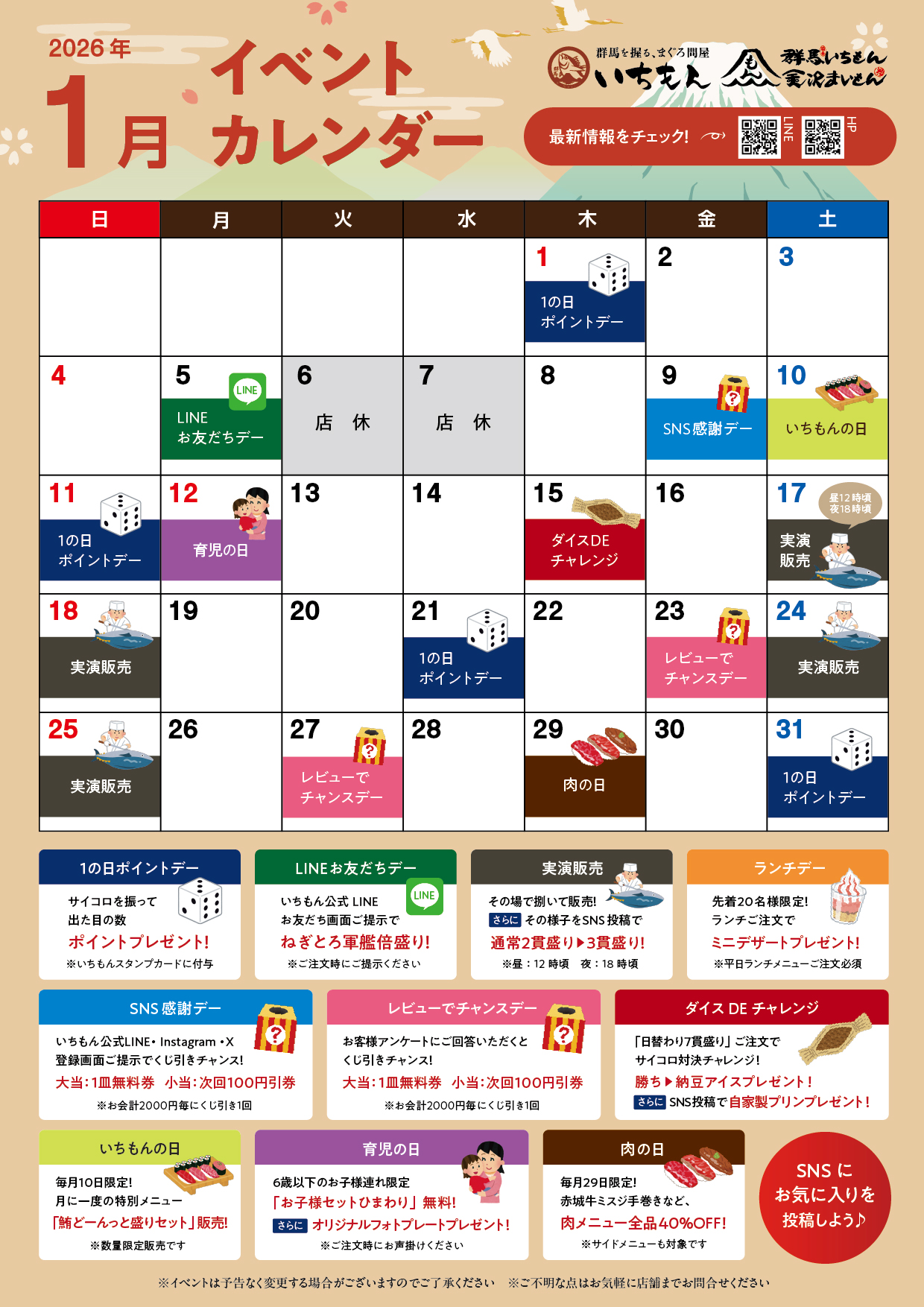 チェック必須の楽しいイベントやお得な日が盛り沢山!!