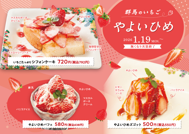 \\ 群馬生まれののいちご【やよいひめ】を存分に楽しめるフェアメニュー開催 //
