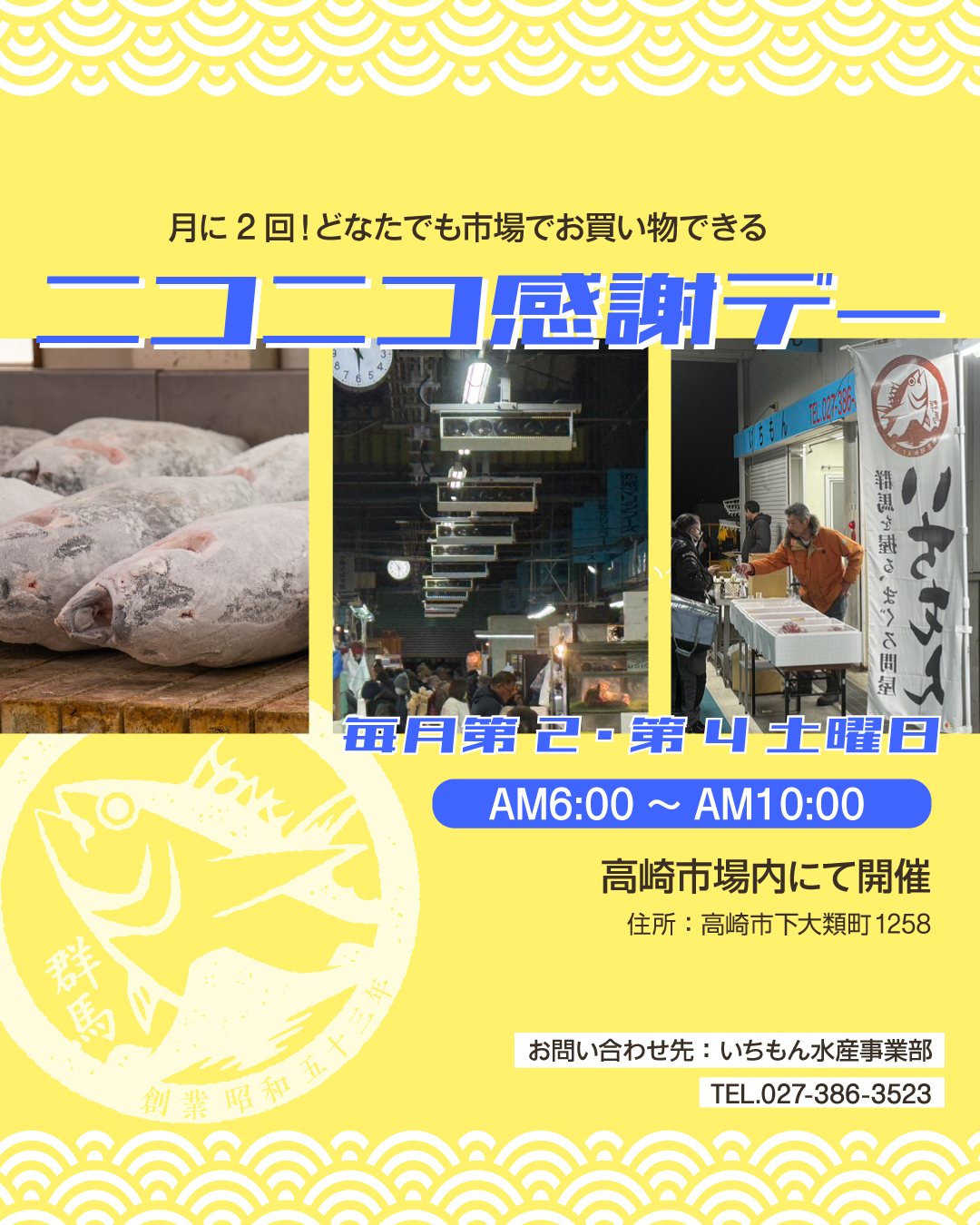 高崎市場内で開催しているニコニコ感謝デーにて、いちもんのまぐろを販売中!
